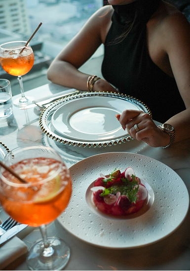 Enjoy breathtaking views of Dubai’s skyline and iconic landmarks, creating an elegant backdrop for your lunch.